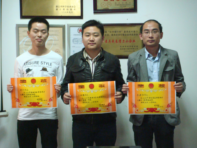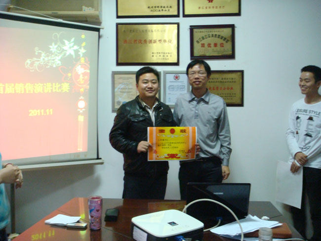 ????????經過激烈角逐,銷售工程師王爍強脫穎而出,奪得一等獎。銷售工程師鄭平、李建偉獲得鼓勵獎。公司領導為獲獎者頒獎。