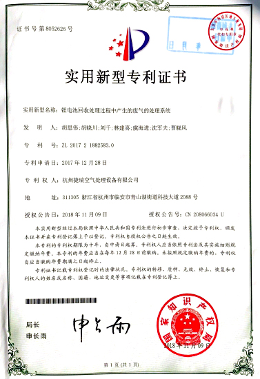 鋰電池處理回收過程中產生的廢氣的處理系統
